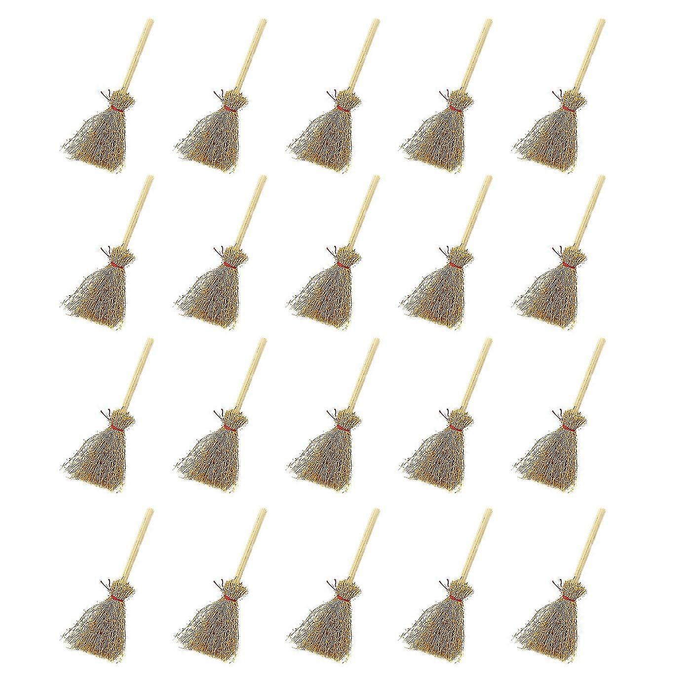 20Pcs Miniature Artificial Mini Straw Brooms with Red Ropes Halloween Straw Decoration Witches Part