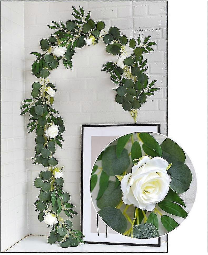 200cm Flower Garland Artificial Rose Eucalyptus Willow Leaves Vine Home Wedding Hanging Decor