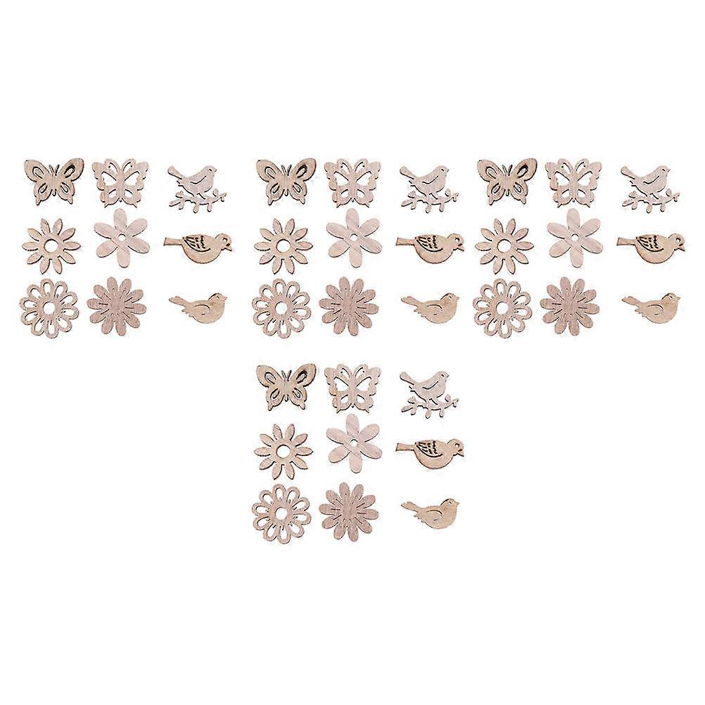200Pcs Unfinished Wood Crafts Circular Flower Bird Pieces For Children DIY Activities Beige