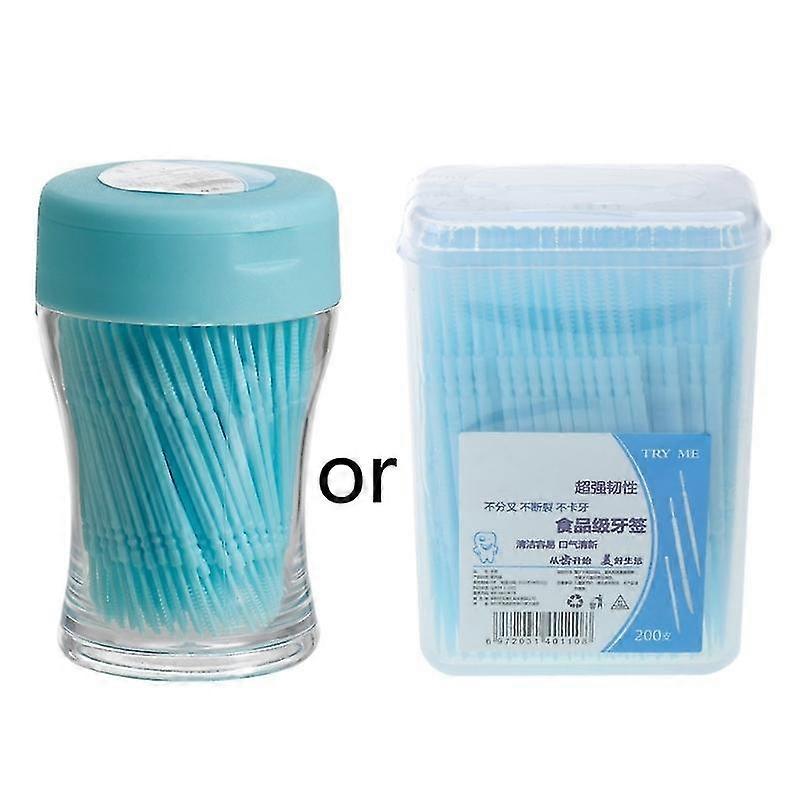 200pcs Food Grade Plastic Toothpick Travel Portable Double-head Dental Oral Sticks Interdental Floss Cleaners Tartar Removal Picks Brush With Storage