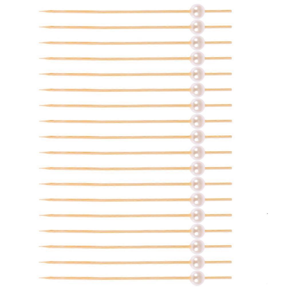200pcs Elegant Pearl Design Bamboo Skewers for Decor Perfect for Desserts Cocktails and Fruit