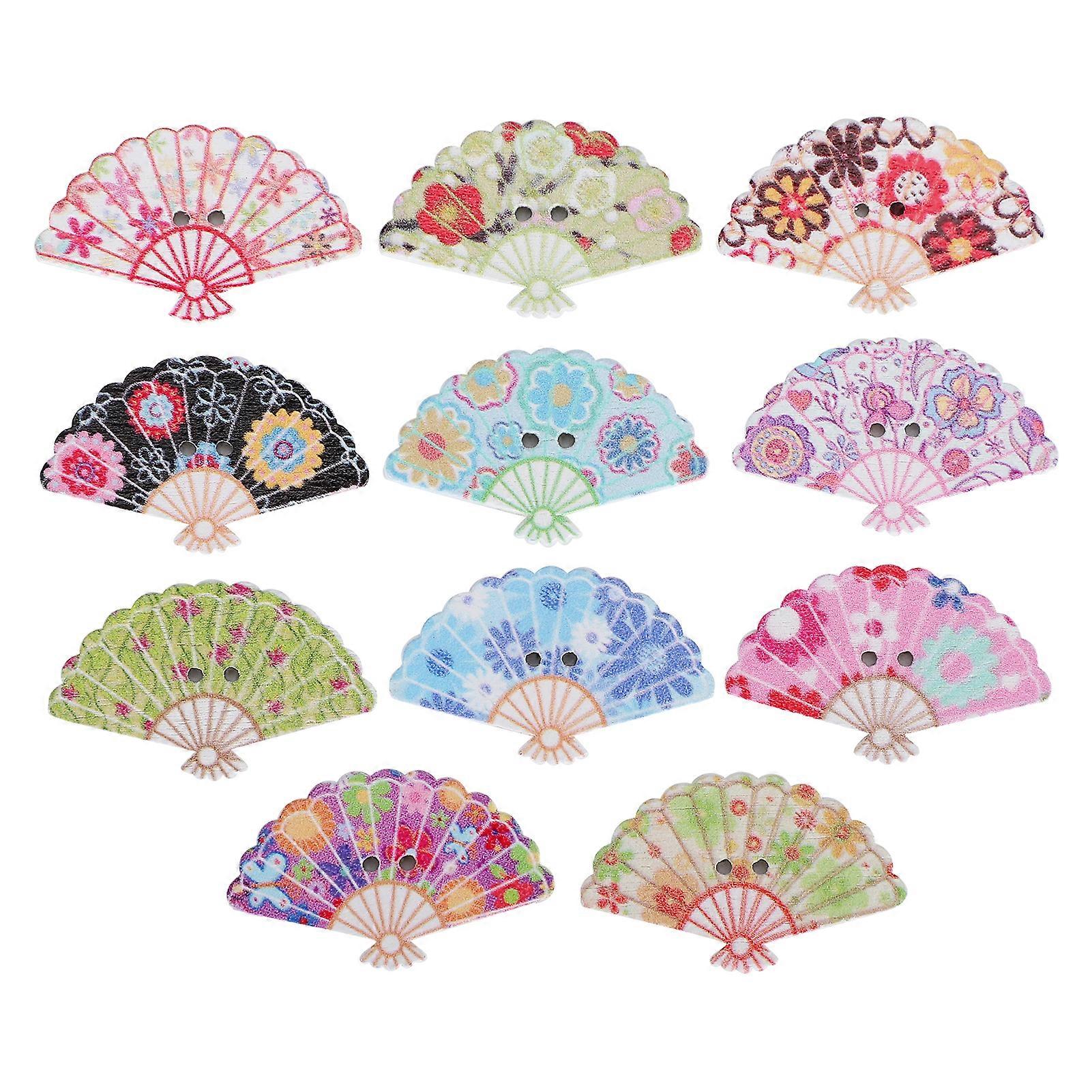 200Pcs Wooden Button Fan Shape Colorful Sewing Decoration Accessories DIY Craft Tool