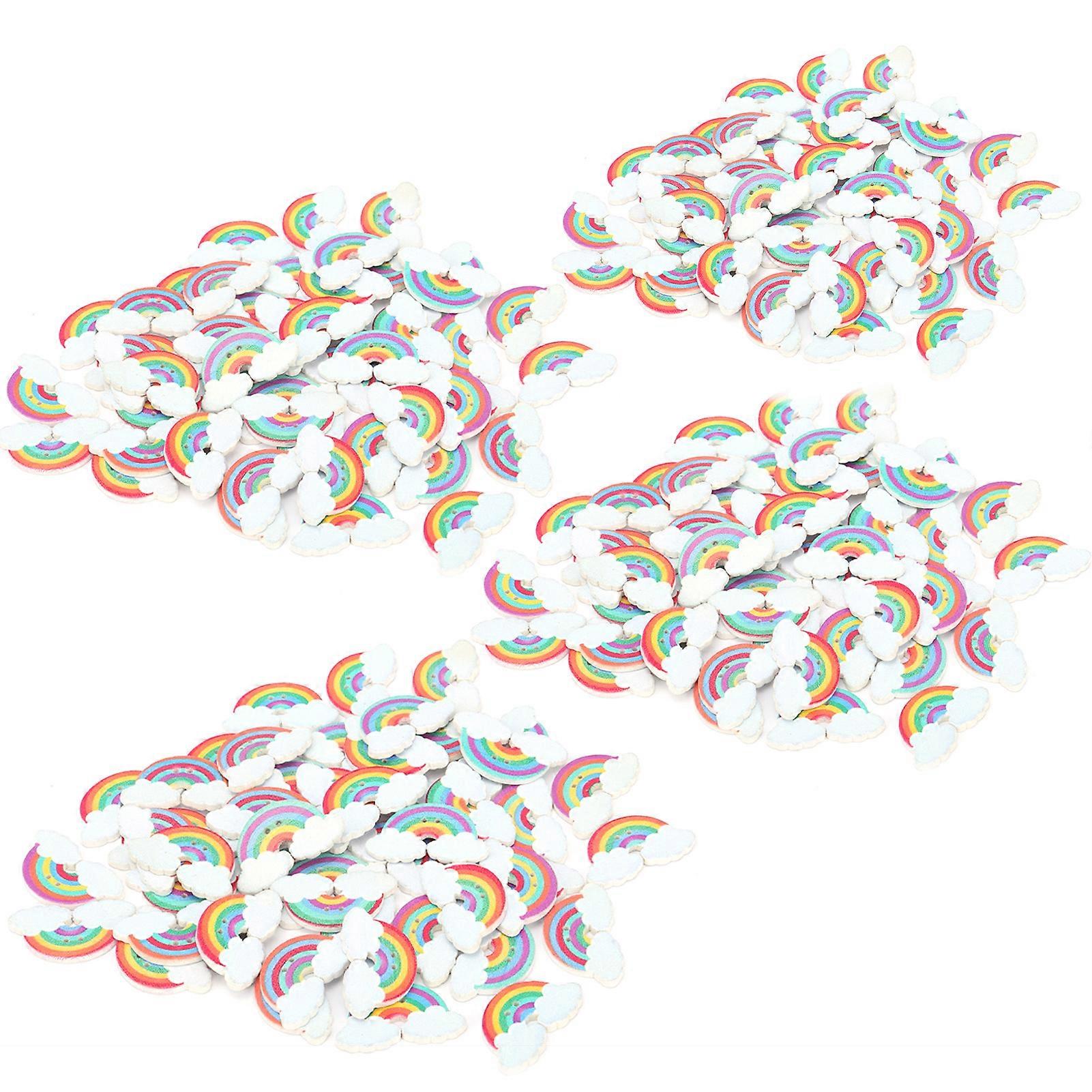 200Pcs Rainbow Wooden Buttons DIY Painted Decoration Accessories with 2 Holes for Children