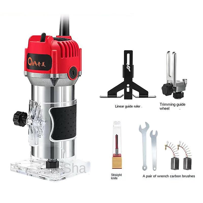 20000rpm Woodworking Electric Trimmer Wood Milling Engraving Slotting Trimming Machine Hand Carving Machine Wood Router 6.35MM           M1P-6 Fine Aluminum Body Trimming Machine Product Name: Multifunctional Electric Trimming Machine Rated power: 680W Rated frequency: 50Hz No-load speed: 20000r/min Collet diameter: 6.35mm Motor material: high temperature resistant all copper wire motor Body net weight: 1500g