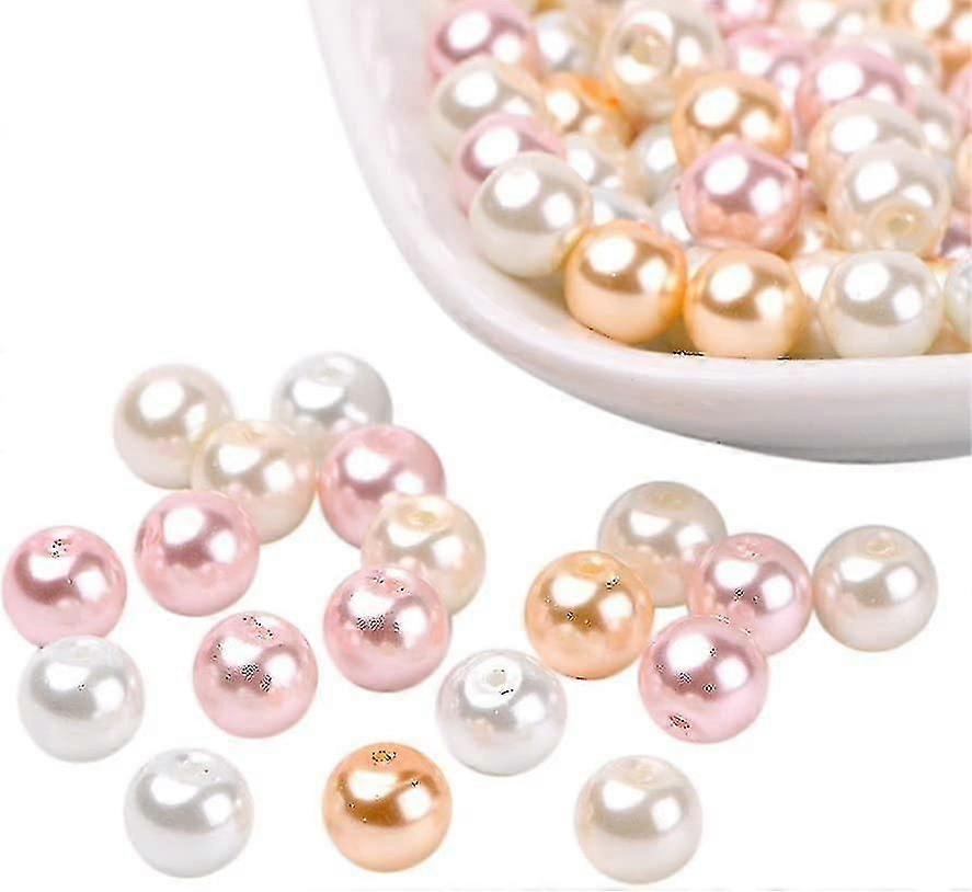 200pcs Pearl Beads 6mm Round Glass Beads Pink Mix Pearl Beads For Jewelry Making