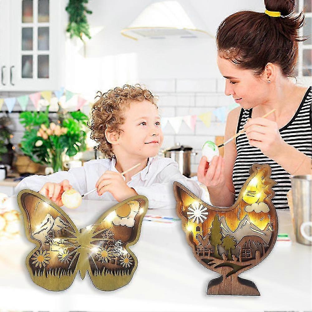 2023 New Led Creative Lovely Animals Wooden Easter Ornaments Easter Rabbit Ornaments Home Ornaments