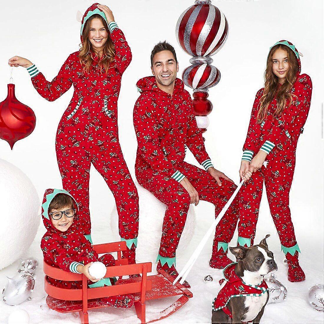 2023 New Christmas Pajamas Set Mother Father Kids Matching Outfits Cute Soft Hooded Rompers Overalls Jumpsuits