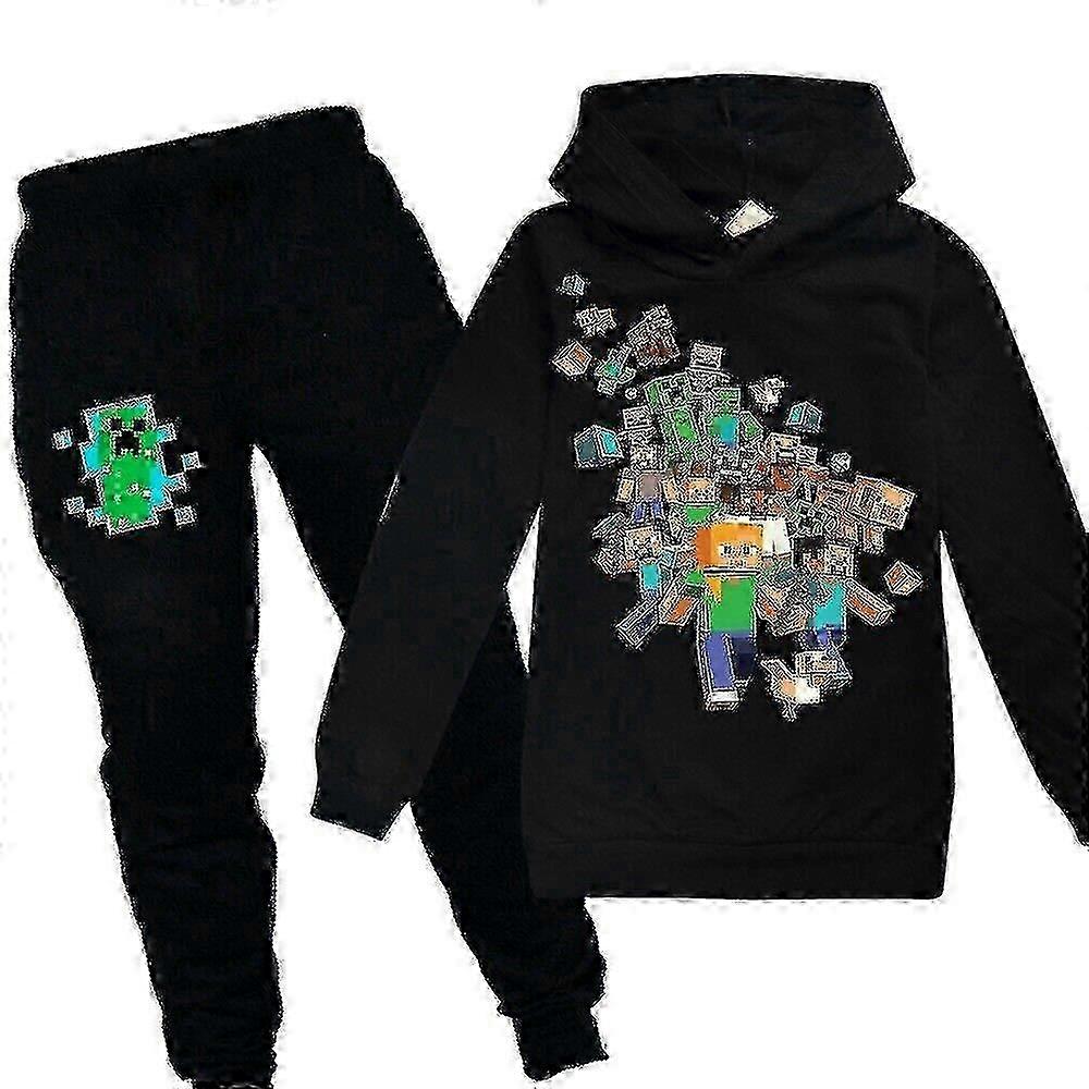 2023-Minecraft Game Kids Tracksuit Set Black Hoodie Sweatshirt Trousers Outfit Clothesa