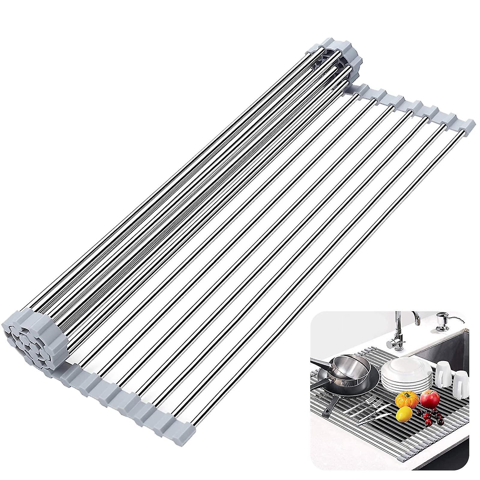 2024 Sink Pan Drying Rack, Roll Up Sink Pan Drainer Multifunctional Foldable Kitchen Stainless Steel Pan Rack Sink Drying Rack (17" X 11.8")