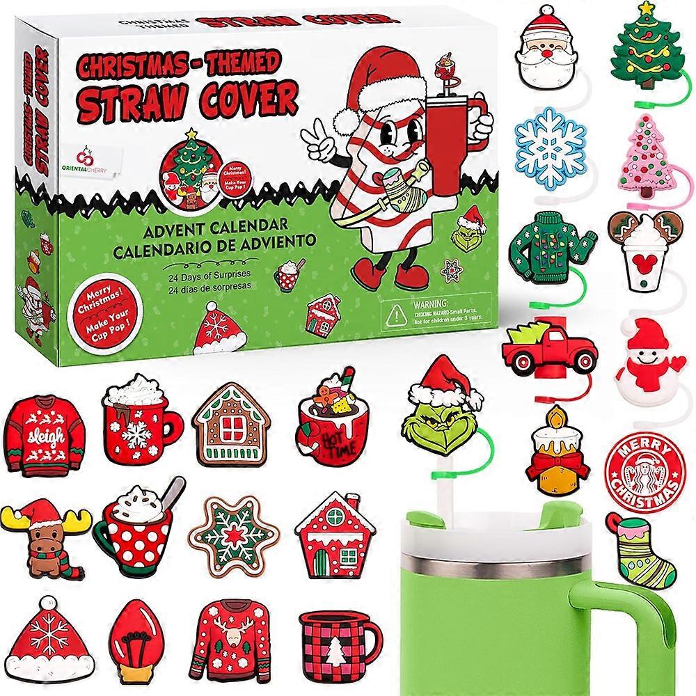 2024 Christmas Countdown Advent Calendar 24 Days of Surprises with 10mm Straw Toppers,Straw Cover Caps Funny Gift for Cup 10/20/30/40Oz Tumbler