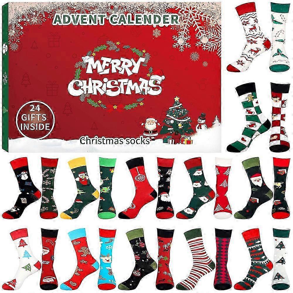 2024 Christmas Funny Novelty Socks Advent Calendar, Xmas Countdown Sock Set Blind Box Gift for Adultschrui141