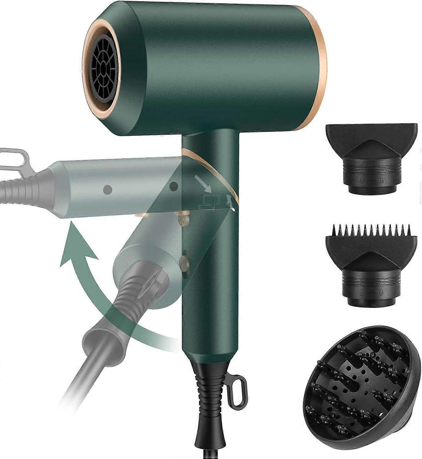 Anion technology: hair dryer ions with 2000 W has high speed and strong wind, which can dry the hair in a short time. The ion technology used can moisturise the hair and prevents static charging of the hair.Noise reduction and 3 wind speeds: the hair dryer quiet has built-in intelligent noise reduction system, it can reduce the noise during use. The hair dryer has 3 wind speeds and independent cold wind button. You can easily adjust the wind speed and temperature to suit your hair care needs.Foldable and portable: the small travel hair dryer, is lighter than ordinary hair dryer, and the use is labour-saving. It can be easily folded up and therefore easy to take with you when travelling, as well as the carrying handle, which makes the hair dryer easy to hang.Hair care at constant temperature: the hair dryer uses heat balance technology to distribute heat evenly and avoid heat damage to the hair. At the same time, it has an overheating protection system that automatically shuts off the power when the temperature is too high to achieve safe hair drying.Great GiftThe hair dryer comes with 2 nozzles and 1 diffuser for curls to meet your different styling needs. In addition, a 2.5 m long cable offers you enough freedom of movement. This foldable travel dryer is an ideal choice for home, travel or business and is also very good as a gift. Colour Name:GreenSpecification:Input voltage: 220-240 V.Rated power: 1800 - 2000 W.Cable length: 2.5 m.Wind speed: 3 range. Package includes:1 x hair dryer.1 x centralised nozzle with comb.1 x centralised nozzle.1 x diffuser.1 x user manual (English language not guaranteed).
