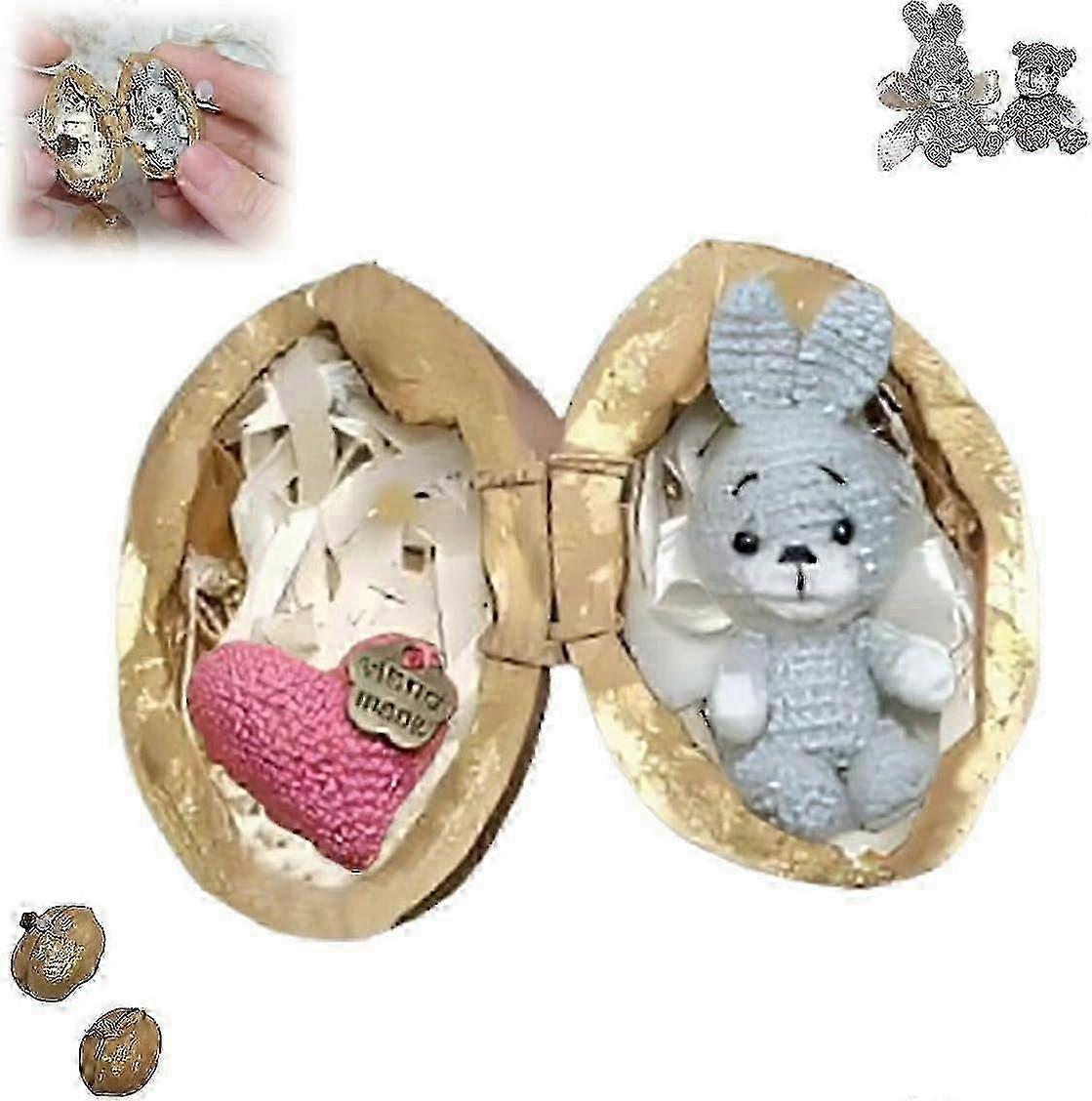 2025 Handmade Crochet Animal in Walnut Shell Miniature Bunny Bear with Love Heart Mini Emotional Support Gifts