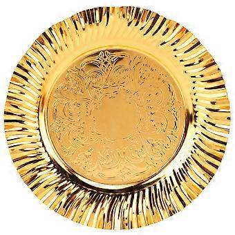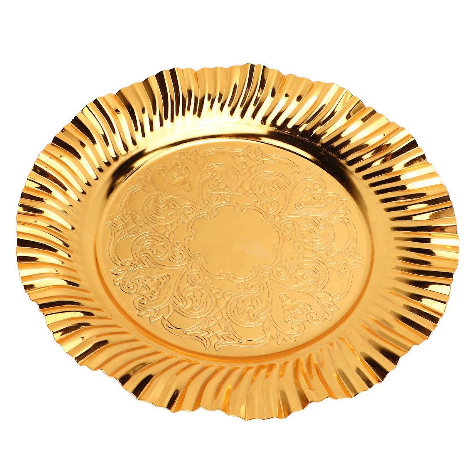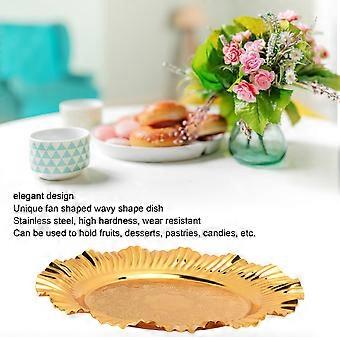 2025 أحدث طراز صينية تقديم ذهبية مستديرة 20 سم على شكل مروحة متموجة غير القابل للصدأ