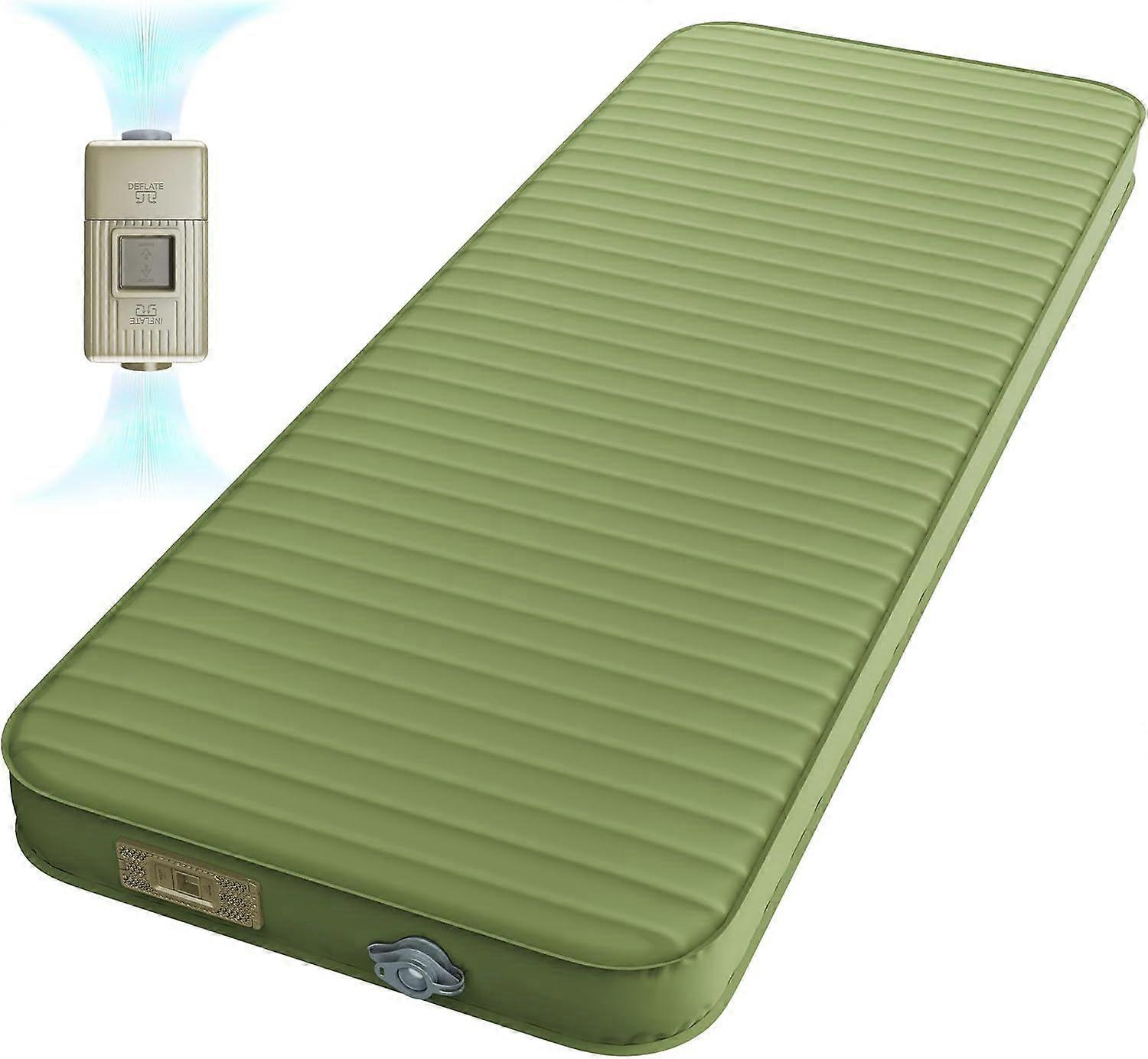 4 Inch Thickness, All Seasons Insulation - Our camping sleeping pad, with an R-value of 9.5, offers outstanding insulation. It keeps you warm in winter and ensures breathability in summer. Once inflated, measures 78.74"x29.13"x4". At the same time, the 4-inch thickness elevates your back and head off the ground, allowing you to lie more comfortably on the mat. It accommodates various sleeping positions, whether you sleep on your back or sideRechargeable and Removable Smart Charging Pump - Our portable pump features a robust 2400mAh battery capacity, delivering rapid inflation for camping mats within 50 seconds. After a full charge (3-4 hours), it supports up to 7 automatic inflation cycles. This design allows you to spend less time setting up gear and more time embracing nature's serenityOne-Button Start,Quick to Inflate& Deflate, Easy to Store - self inflating sleeping pads cot features a built-in intelligent air pump. ONE TOUCH CONTROL for fast Inflation. Automatic Inflation with a click! Say goodbye to the stress of carrying an extra air pump, using your mouth or feet to inflate the pad. ONE-TOUCH DEFLATION, no need more repeated rolls up. it reduces the volume of the camping mattress by 50% after deflation, can store it easily. saving time and laborWorry-Free And High-Quality Service - If you encounter any issues during use, please feel free to contact us at any time. We will respond promptly within 24 hours and resolve your problems.Warm Reminder - For the first use, please fully charge the electric pump before using it and the first inflation may take longer as the foam needs time to expand under vacuum.Besides, this camping mattress pad is easy to clean, just wipe it clean with a damp cloth.Perfect for Various Outdoor Activities --This camping sleeping pad bed weighs 6.6 pounds and load capacity: up to 660 lbs.Whether youre camping, beach tirp, or using it as a sleeping mat in a tent and car or indoor home use, this camping air mattress is a great addition to your camping essentials, providing comfort and stability for a good nights sleep