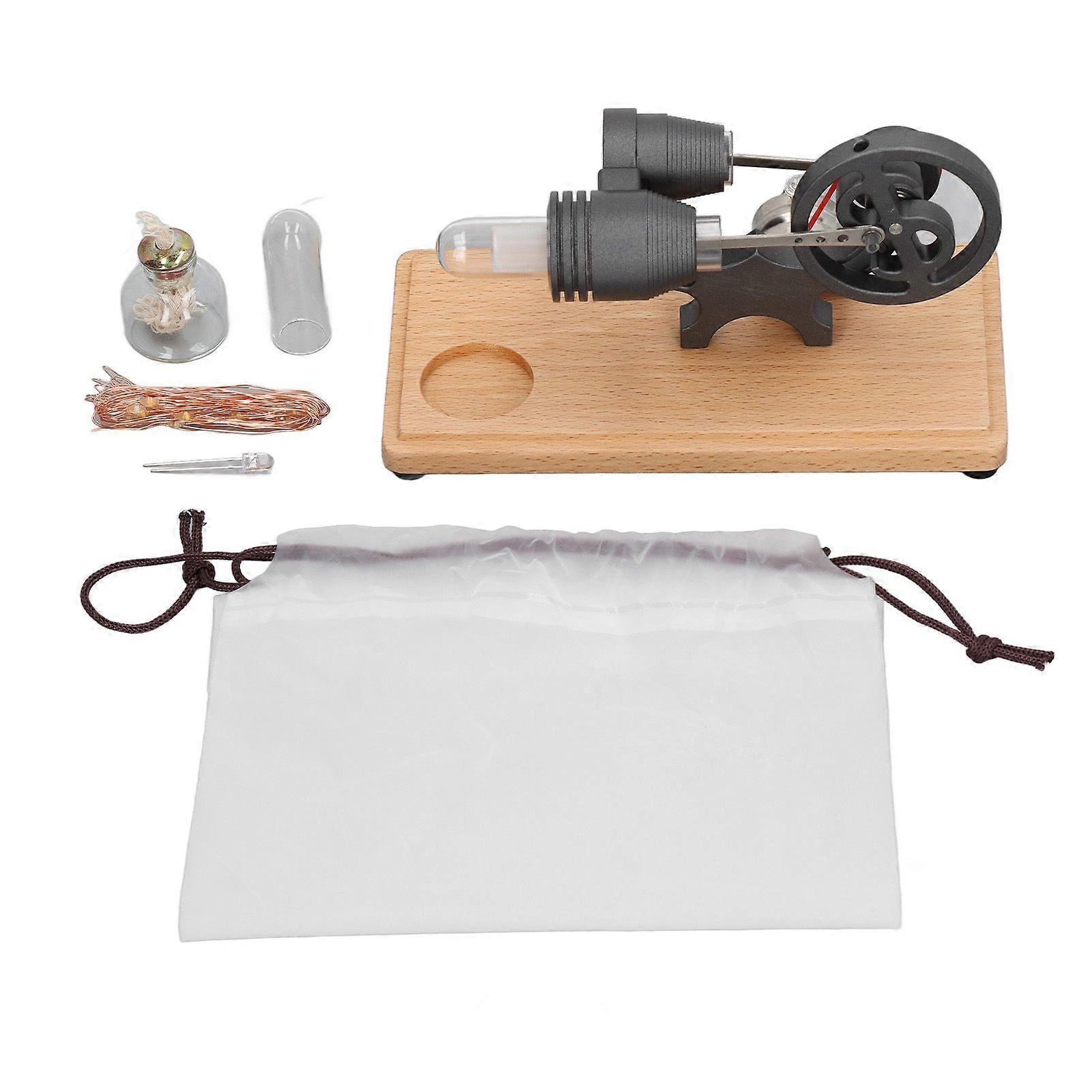 Stirling engine generator model scientific experiment model physics experiment science education wooden bottom plate single lower log gray...