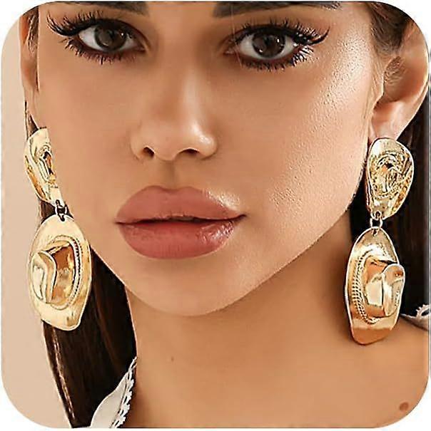 2025 Latest Model Western Gold Large Hat Dangle Earrings for Cowgirl Cowboy