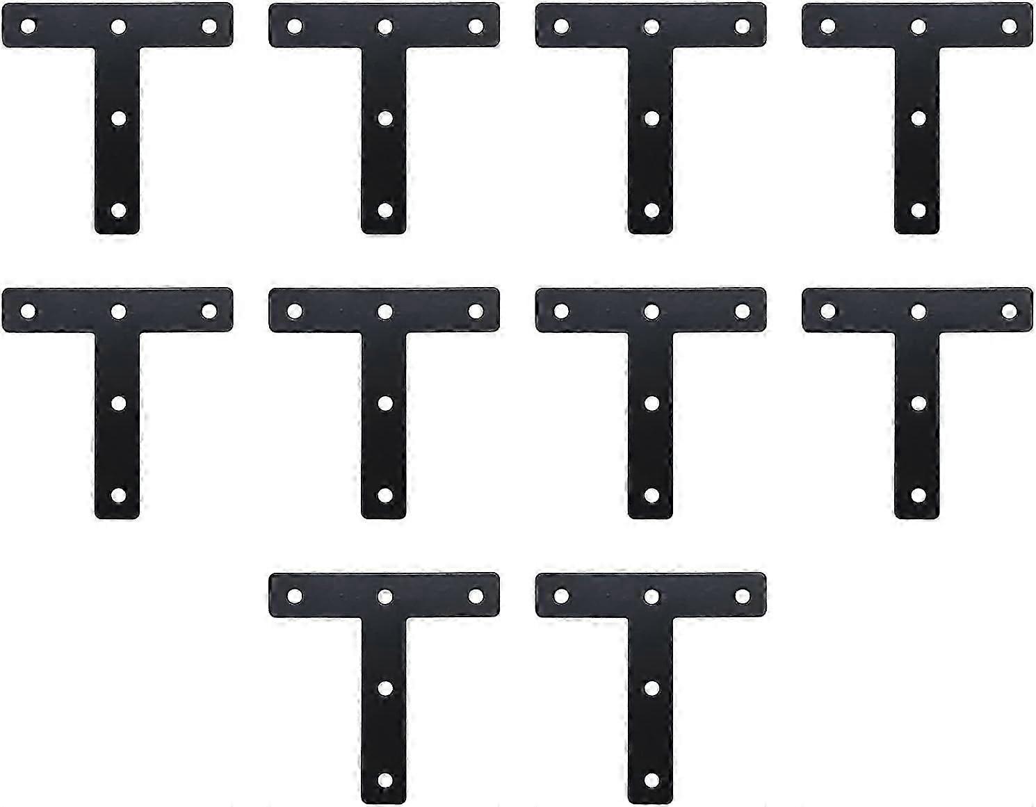 2025 Latest Model 10pcs T Brackets Mending Plate, Stainless Steel T Flat Shape Repair Plate, Black
