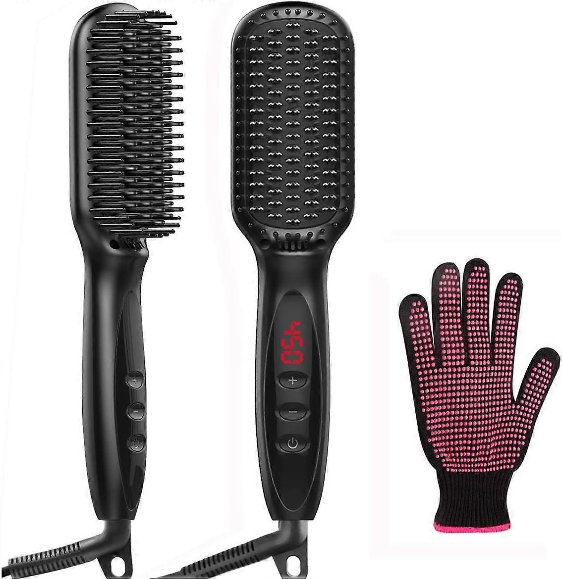 2025 New Hair Straightener Brush, 2-in-1 Ionic Enhanced Straightening Brush with Anti-Scald Feature, 30s Fast