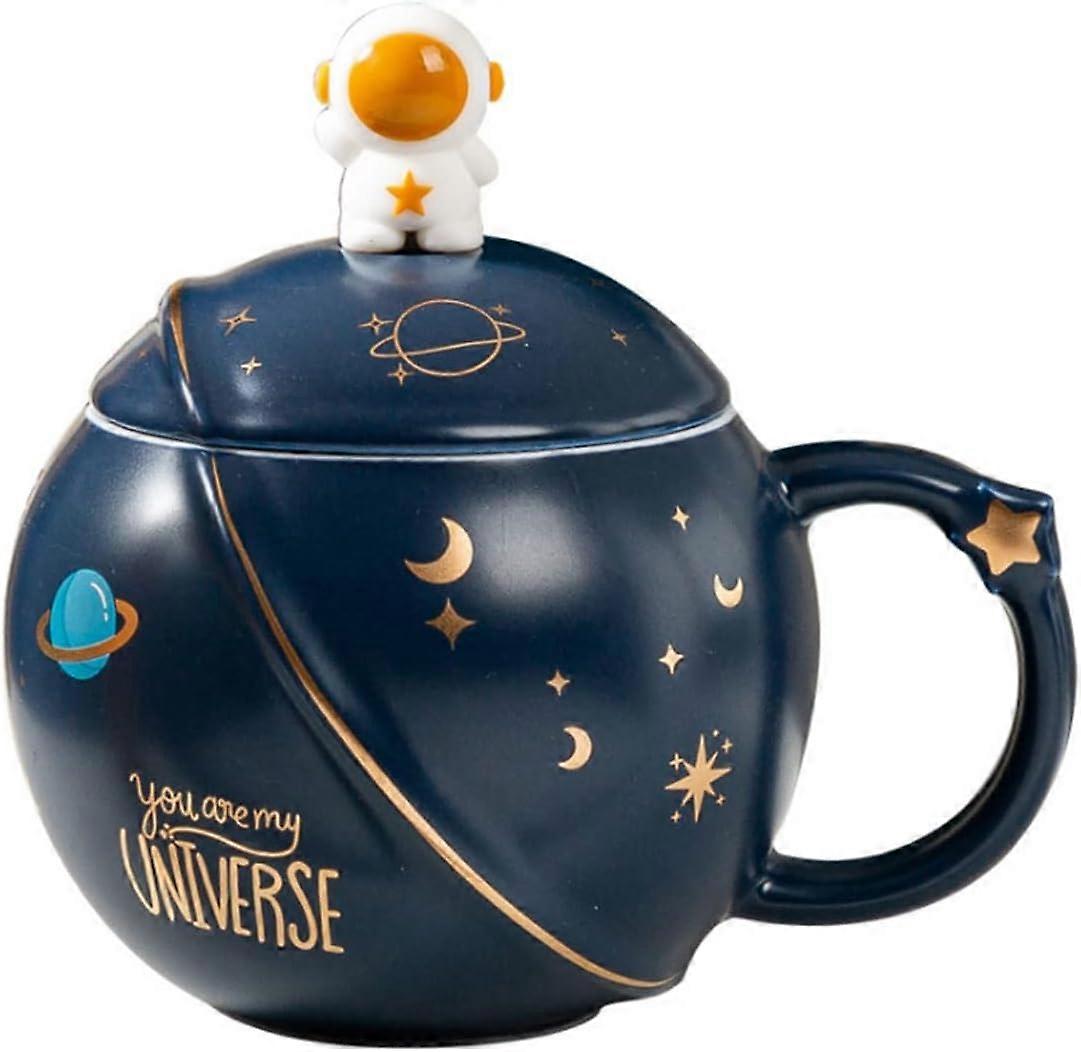 2025 New Cute Astronaut Mug with Lid and Spoon, Kawaii Cup Novelty Cup Coffee, Tea and Milk, Mug Gift Dark