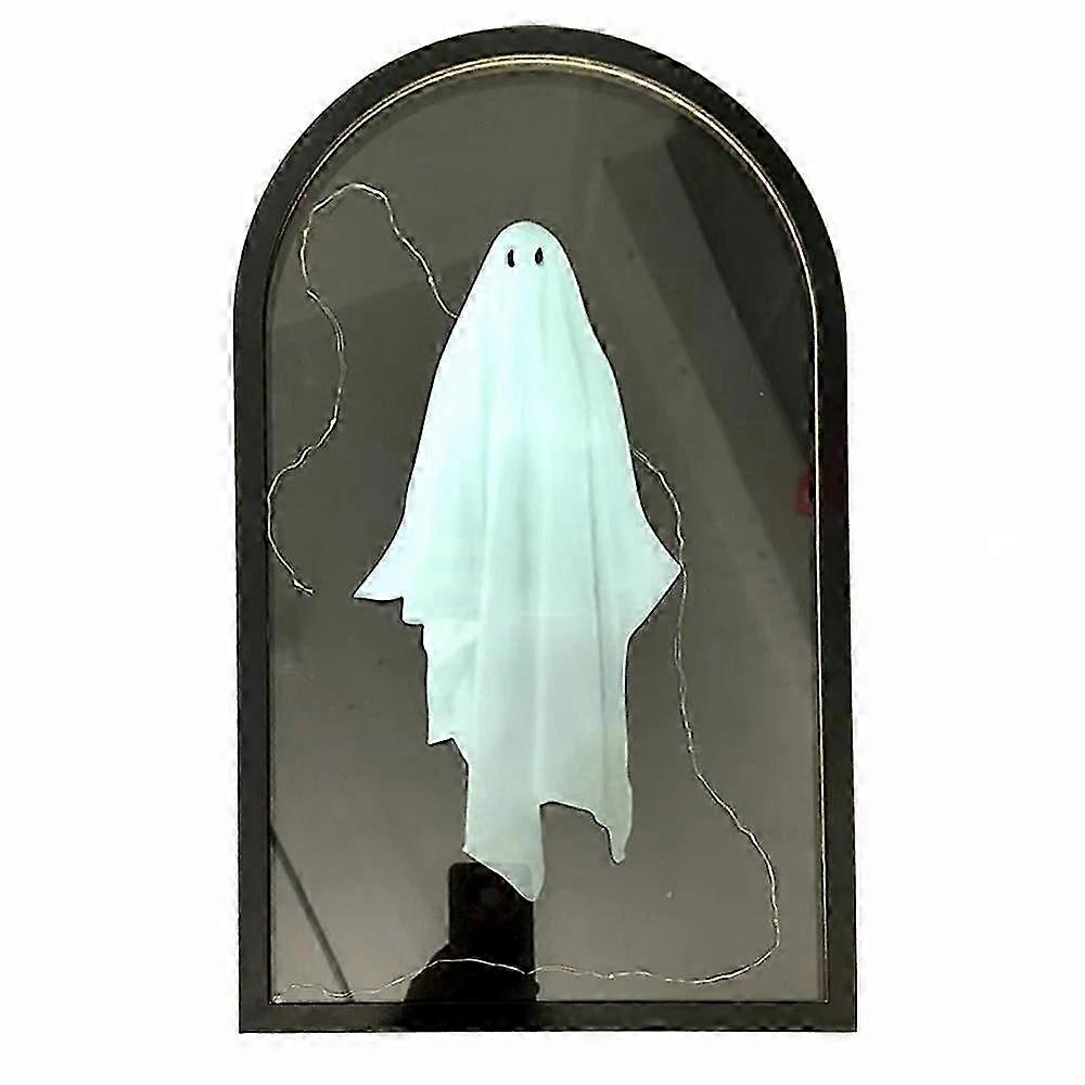 2025 Halloween Novelty Ghost Mirror,Indoor-Light Up Ghost in Glass Cloche