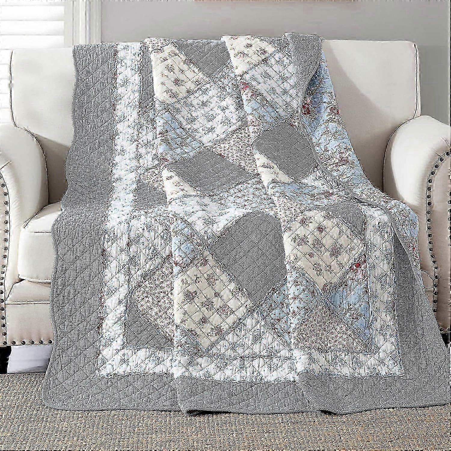 Pastoral Blue Washed Patchwork Quilt, Cotton Bedspread, Perfect for Bedroom or Air Conditioner Soft Cotton Material: Crafted from cotton, this quilt offers a soft, breathable fabric for ultimate comfort. The filling is a cotton blend (60% cotton, 40% other), creating a lightweight yet cozy quilt suitable for all seasons.Large Blanket Size: At 59" x 79" (150 x 200 cm), this blanket fits double beds, sofas, or chairs. Perfect for draping over furniture, snuggling on the couch, or covering up on the bed.Double-Sided with Beautiful Embroidery: Both sides feature intricate stitching and beautiful colors, offering a fresh look whenever you choose to flip it. The quilt adds lovely texture to any room.Versatile & Functional: This quilt works as a bedspread, couch throw, or even a picnic mat. Whether you're lounging, napping, or spending time outdoors, its a practical and stylish addition to any space.Gift Idea for All Occasions: Easy to maintain with machine wash and tumble dry options, this quilt is a perfect gift for friends, family, or loved ones. Ideal for holidays and special occasions. Note: Due to the light and screen setting difference, the item's color may be slightly different from the pictures. Please allow slight dimension difference due to different manual measurement. Sold by-DIMEANI official store