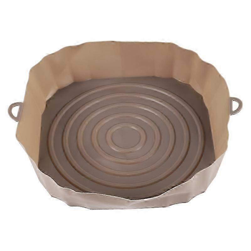 20Cm Air Fryers Oven Baking Tray Fried Chicken Basket Mat AirFryer Silicone Pot Round Replacemen Grill Pan Brown