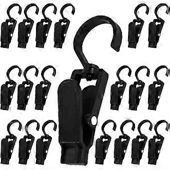 20pcs Super Strong Plastic Family Travel Rotating Hanging Laundry Hook, Clothespin, Hat Clip-4.3 Inches (black)