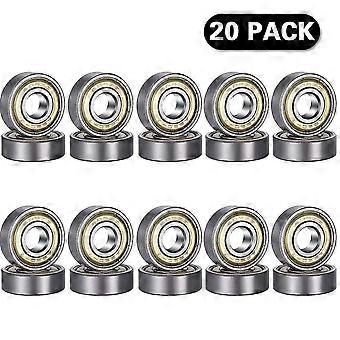 20pcs 608 Zz الكرة تحمل، 608zz معدنية مزدوجة محمية مصغرة عميق الأخدود لوح التزلج 3D طابعة محامل الكرة