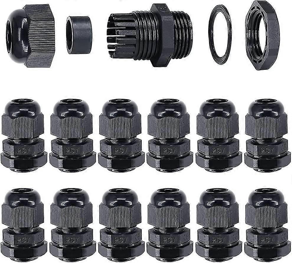 20pcs Pg7 Plastic Waterproof Adjustable 3-6.5mm Cable Gland Connectors Seals With Gaskets