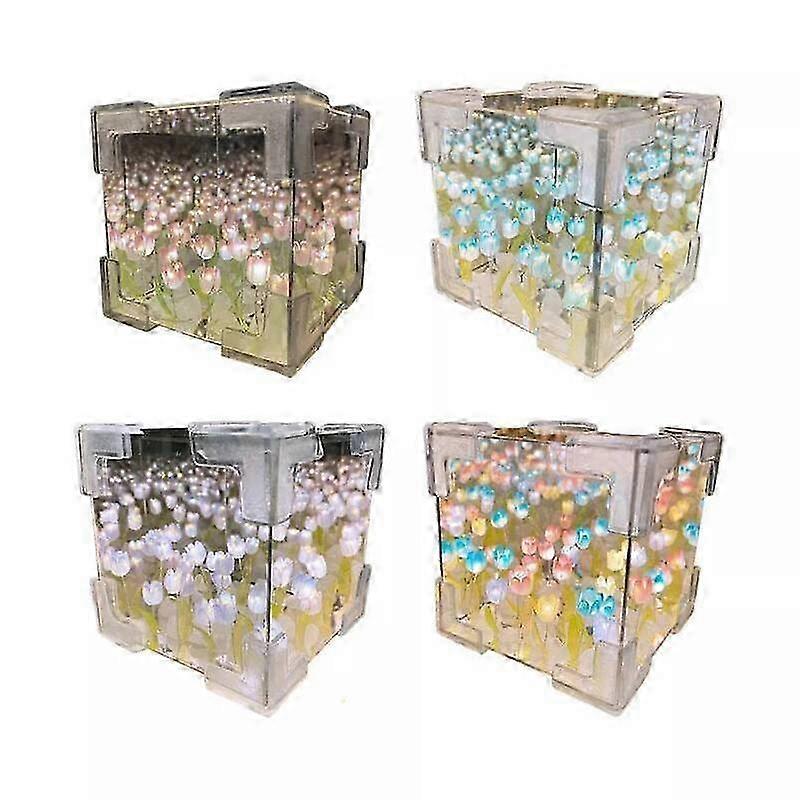 21 Flowers Lampara De Tulipanes, DIY Tulip Night Light Cube Mirror Lamp SZRH A-F