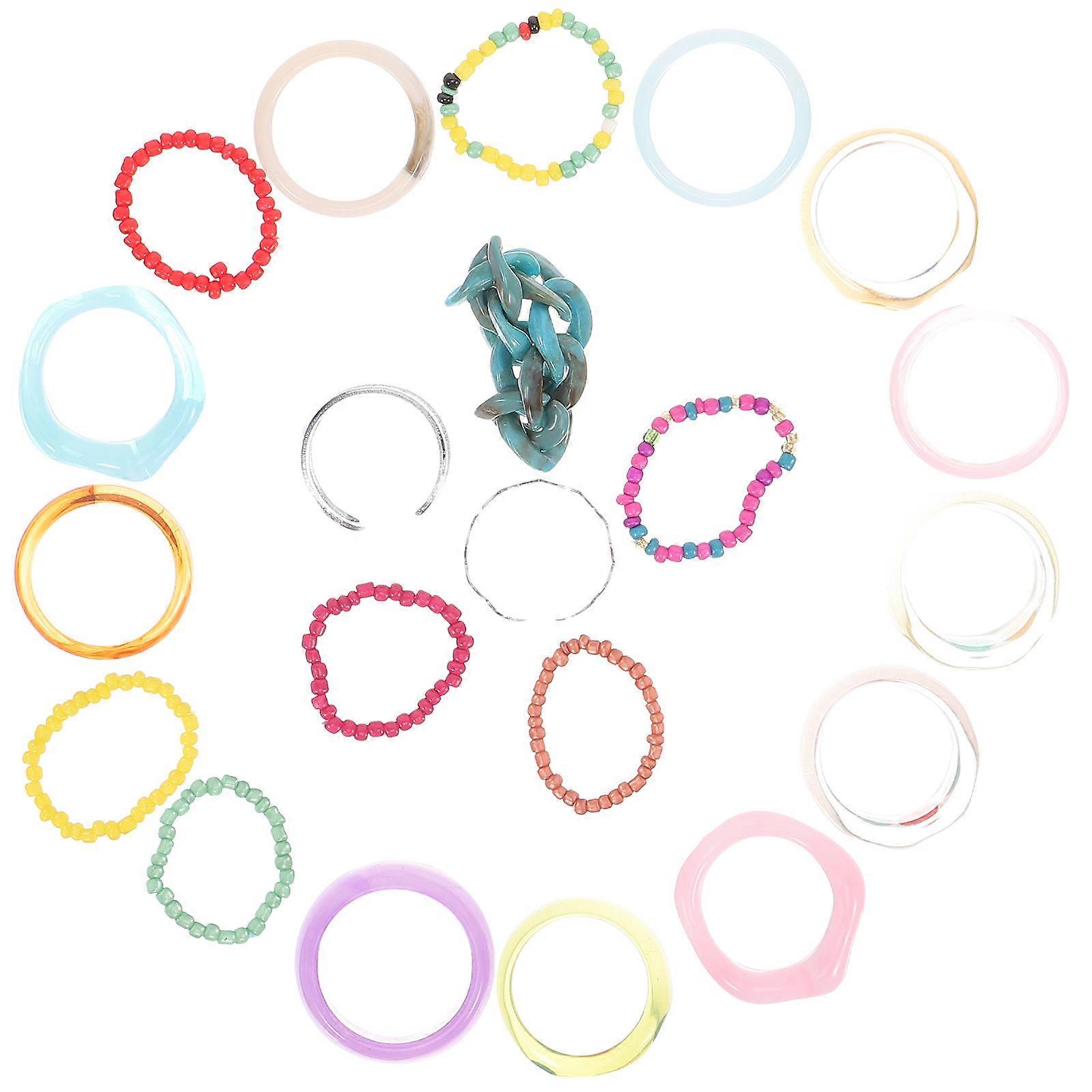 21PCS Colorful Resin Rings for Women – Stylish Knuckle Finger Jewelry for Summer Fashion & Daily Wear