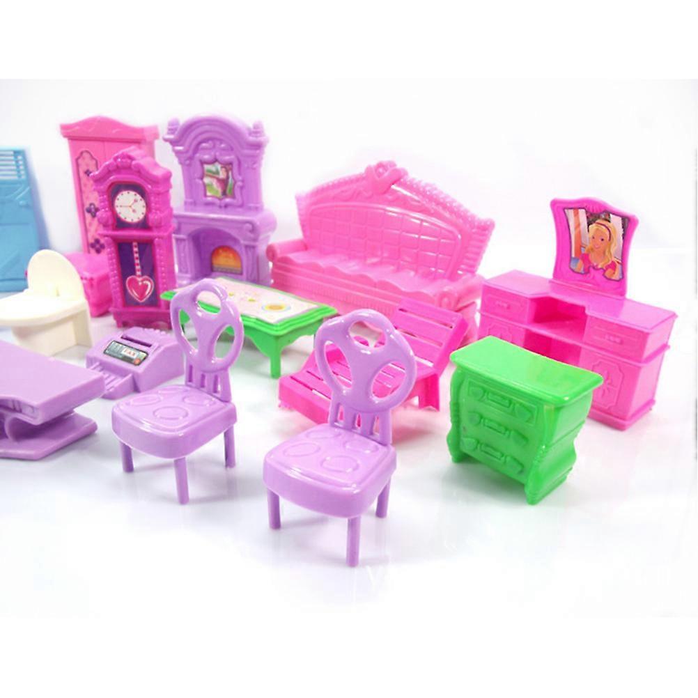 22Pcs Dollhouse Play Set Plastic Furniture Miniature Rooms Baby Kids Pretend Play Toys