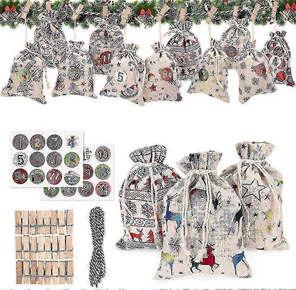 24 Christmas Calendar Bags Burlap Hanging Advent Calendar Garland Candy Gift Bag