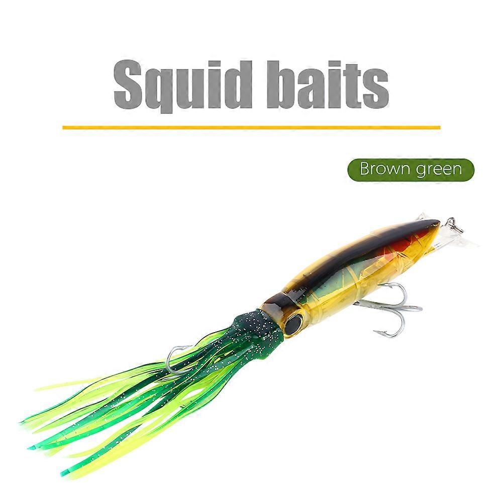 24cm/40g Fishing Lures Squid Lures Fish Bait Crankbait Tackle Jig Treble Hook Brown Green