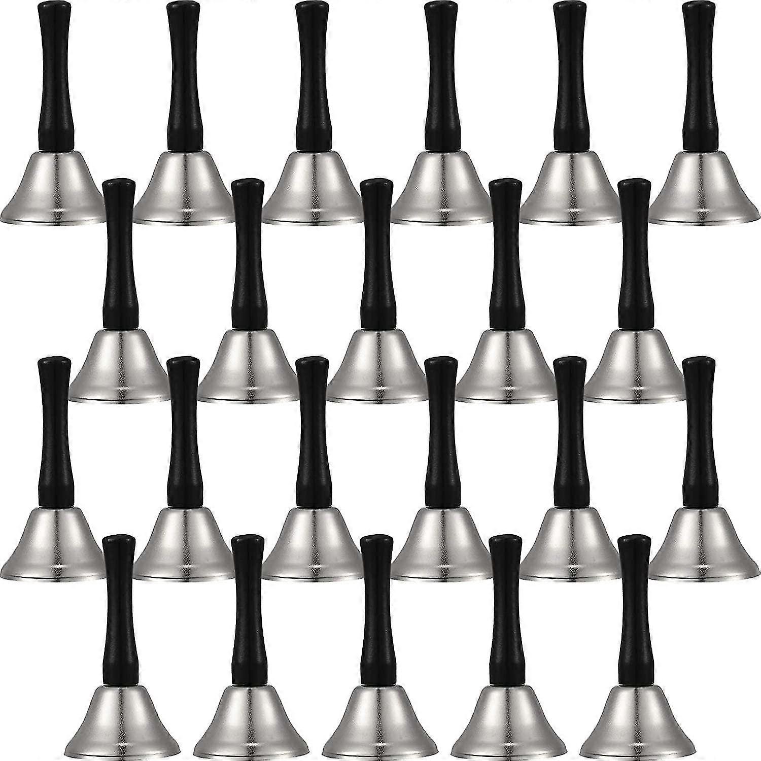 24 Pieces Hand Bells Steel Service Handbells Black Wooden Handle Diatonic Metal Bells Musical Percussion (silver)