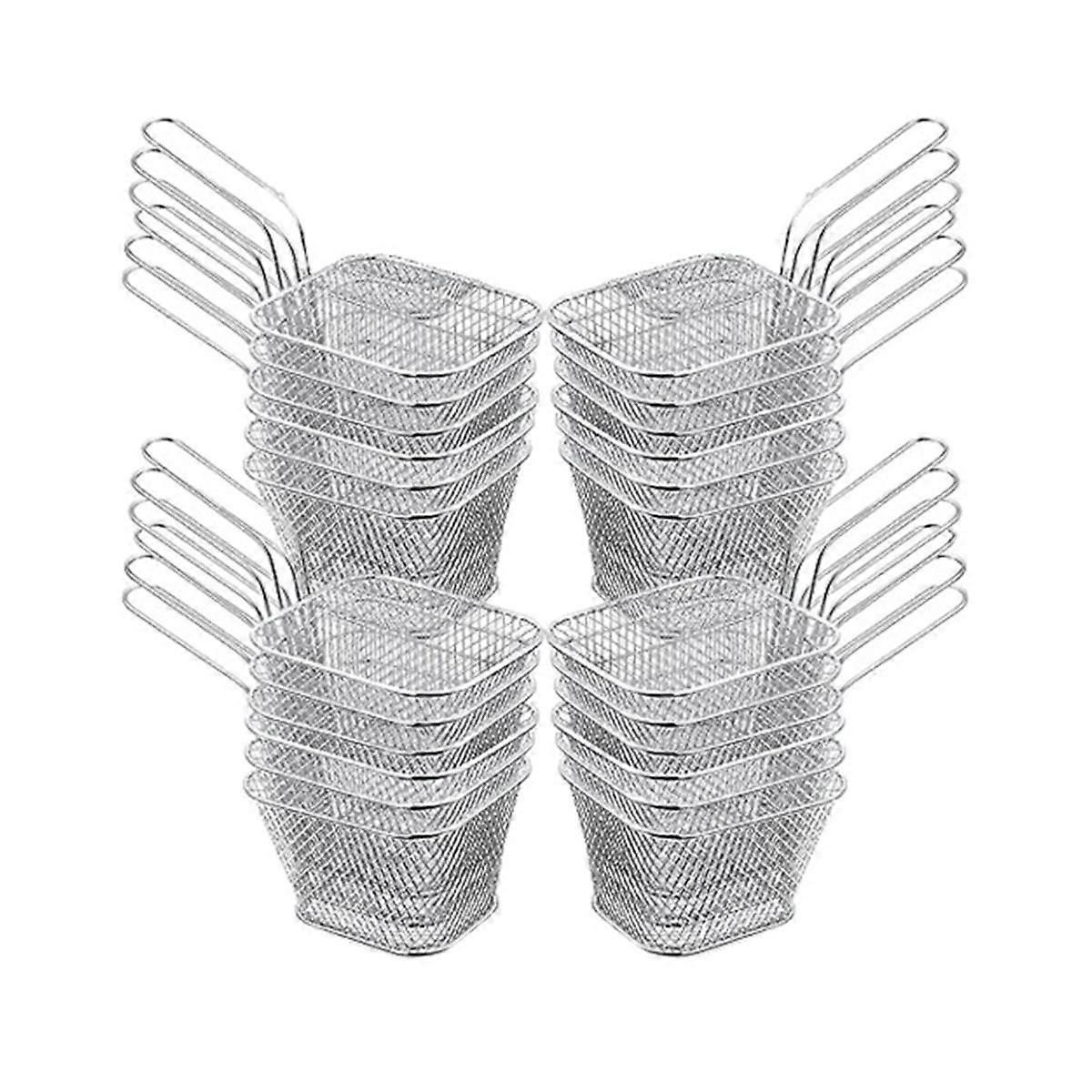 24Pcs Mini Square Fry Basket Stainless Steel French Fry Holder Deep Fry Basket Mesh Food Basket with Handles(Silver)