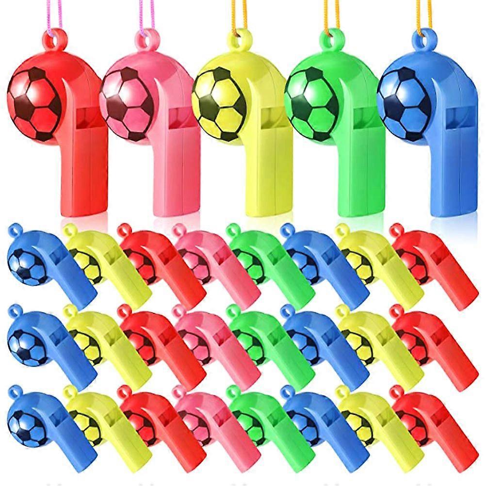 24pcs Plastic Whistles with Lanyard Soccer Pattern Whistle Training Sports Whistle