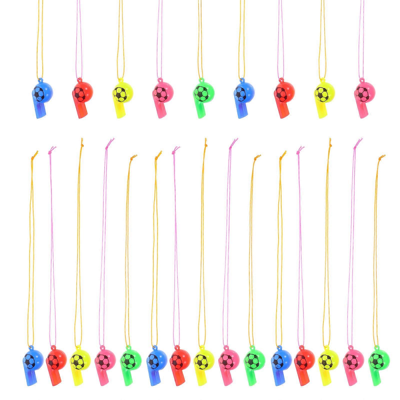 24pcs Football Whistles with Lanyards – Plastic Referee Whistles for Sports Events, Camping, Games, and Cheerleading Activities