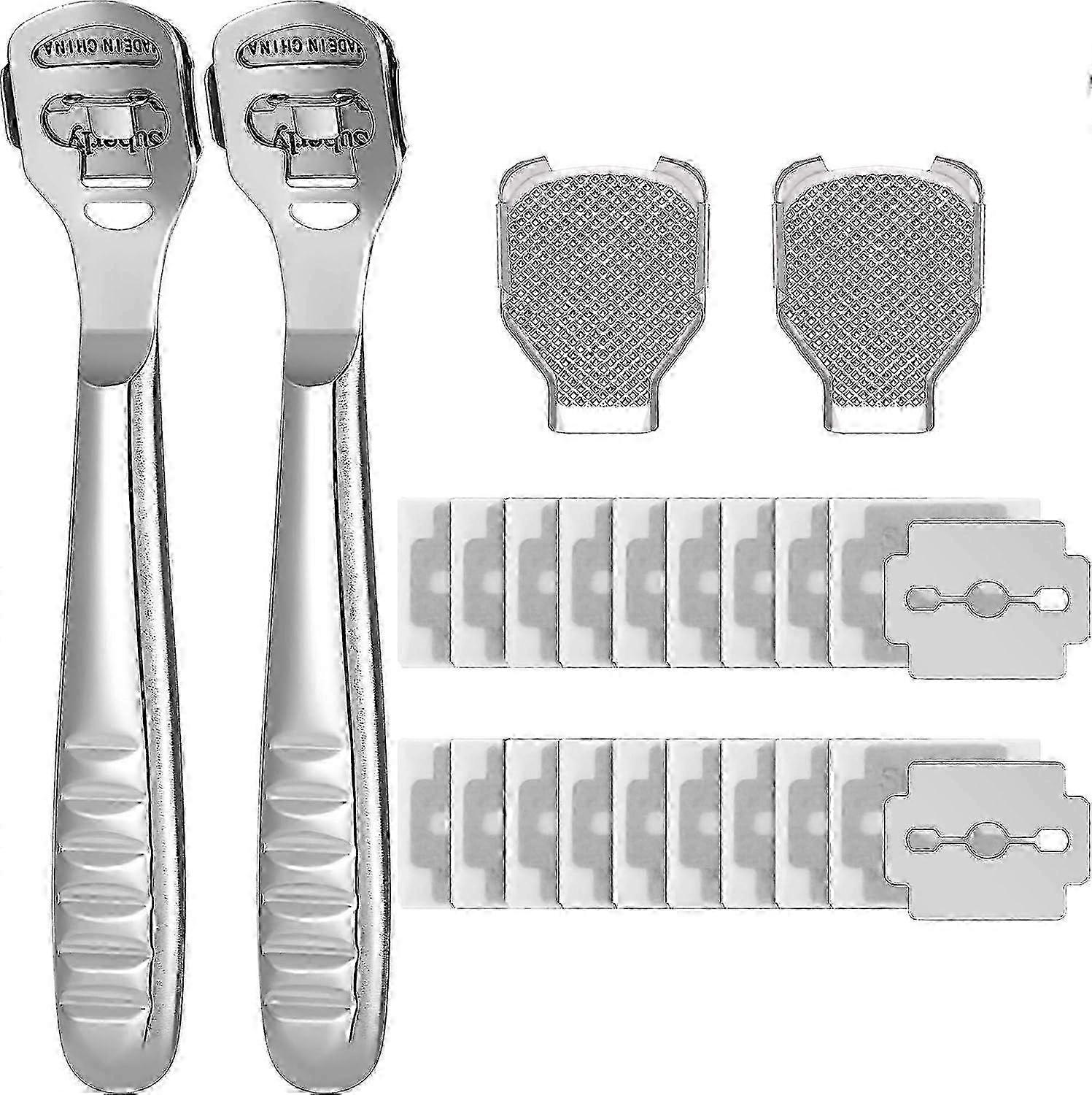 24 Pieces Callus Shaver Set, 20 Replacement Slices Blades 2 Callus Shavers and 2 Foot File Head Foot Care Tools Steel Handle