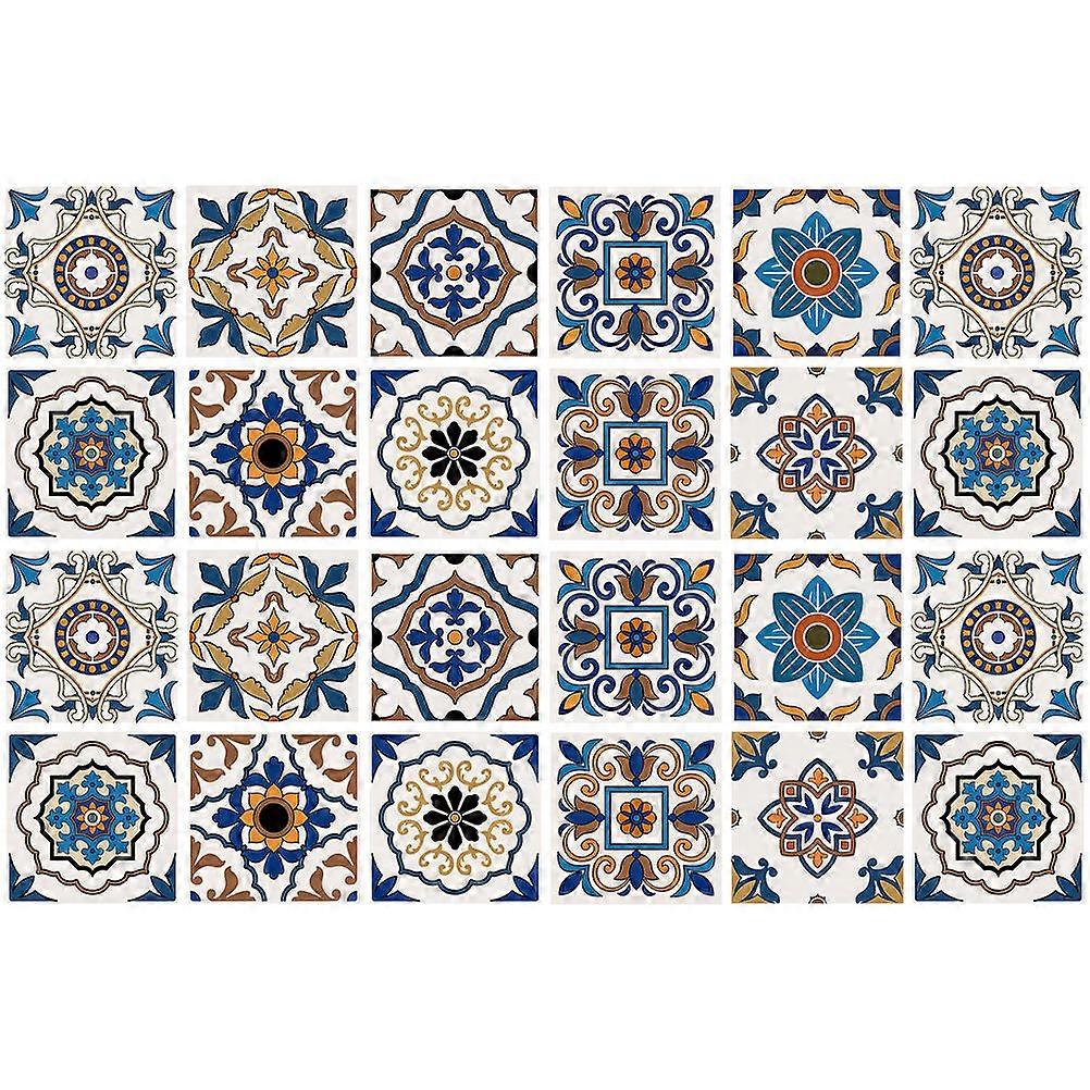 24pcs Peel and Stick Tiles Self-adhesive Kitchen Tile Stickers Vintage Bathroom Kitchen Wall Stickers