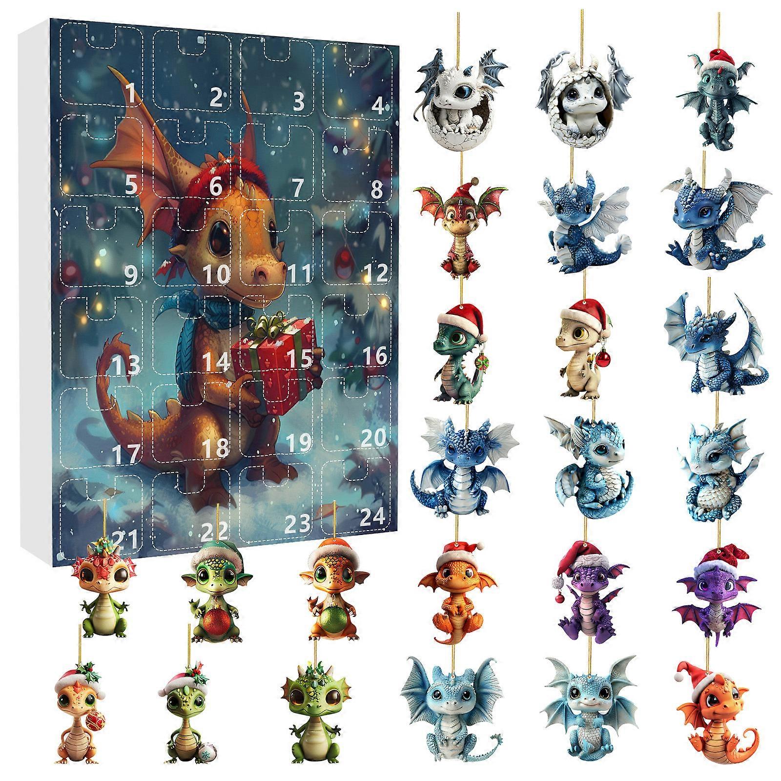 24pcs/set Christmas blind box acrylic dragon pendant Christmas advent calendar blind box Christmas tree pendant
