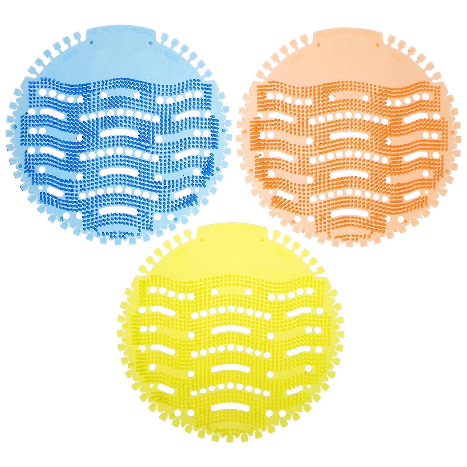 Enhance the cleanliness and ambiance of your restroom with our scented urinal mats. These mats are good for men's urinals, offering a dual function of deodorize and reducing splash. The spiked design helps to trap debris and far from clogging, while the pleasant scent keeps the restroom smelling fresh. Easy to use, just position the mat in the urinal and let it do its job. Features -Color:Assorted Color -Material:EVA -Size:16.00X16.00X0.10cm/6.29X6.29X0.04in -Quick odor neutralization: the spiked urinal screen deodorizer rapidly neutralizes unpleasant odors in urinals, ensuring a consistently fresh environment -Male specific design: tailored for men's urinals, this deodorizer addresses the distinct odor of male urine, providing a targeted solution for odor control -Effortless installation: with no need for complicated setup, just place the urinal screen in the urinal, and it will start working immediately, offering simplicity and ease of use -Multiple scent options: users can select from a range of fragrances, making it easy to find a scent that suits their preferences and enhances their restroom experience -Versatile usage: ideal for use in various settings such as public restrooms, hotels, and restaurants, the urinal screen deodorizer helps maintain a pleasant atmosphere in any men's restroom Package list: 24 x Urinal Deodorizers