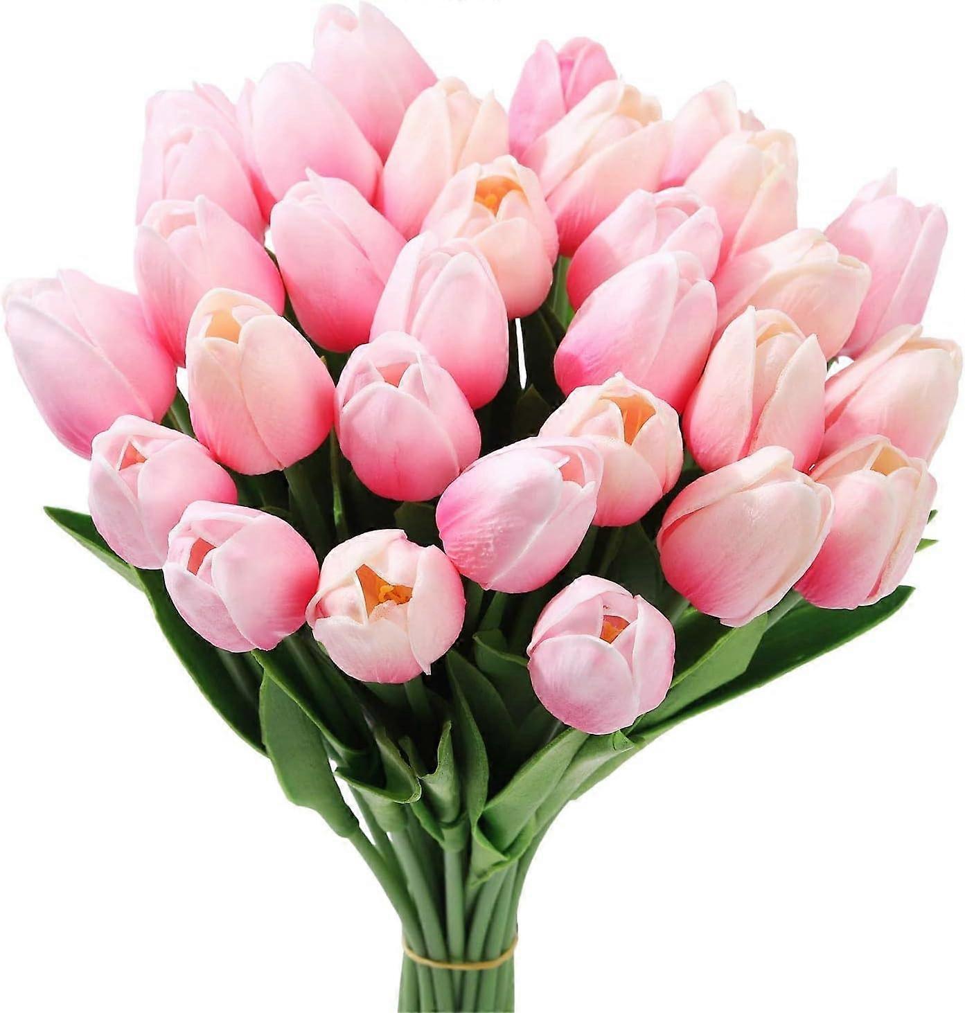 24 Pcs Fake Tulips Artificial Latex Tulips Real Touch Bridal Bouquet for Home Table Party Wedding Decoration(Pink)