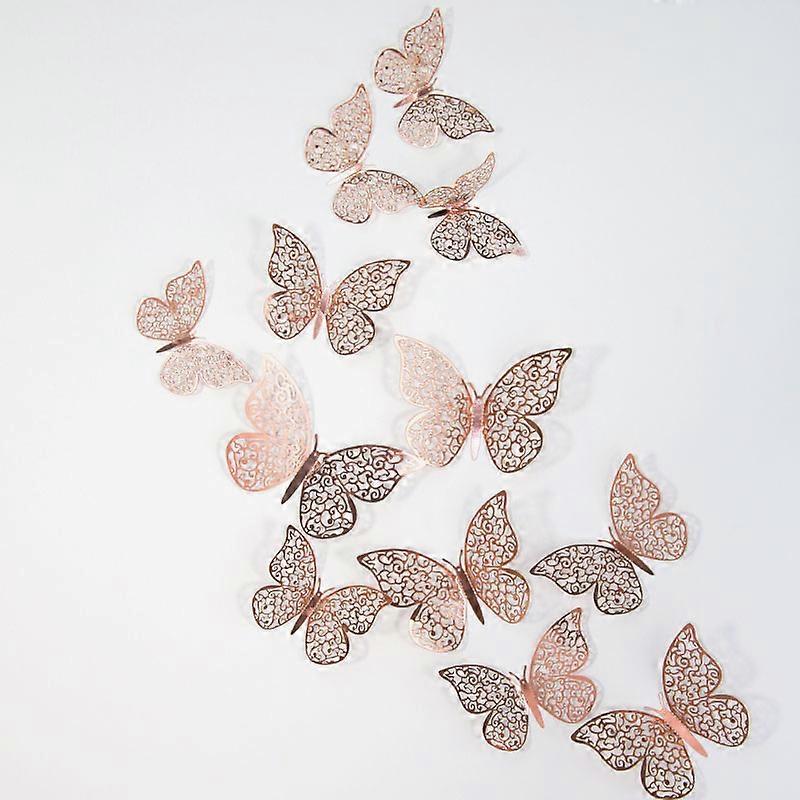 24pcs/2Pack 3d Butterfly Wall Decal Diy Art Rose Gold Glitter Sticker For Kids Bedroom Living Room Home Party Decor