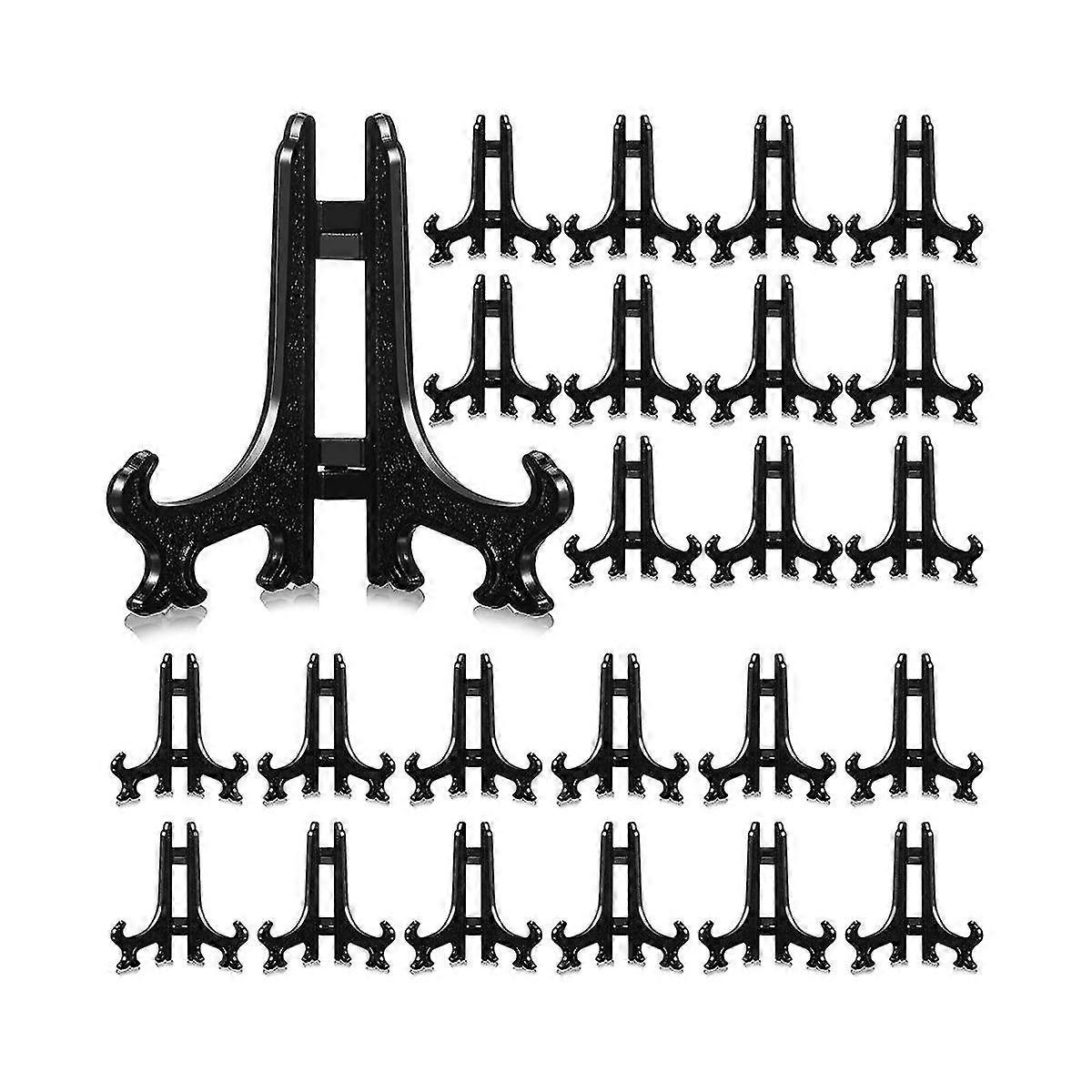 24 Pieces 4 Inch Plastic Easel Plate Holders To Display Stand Easel At Weddings, , Black