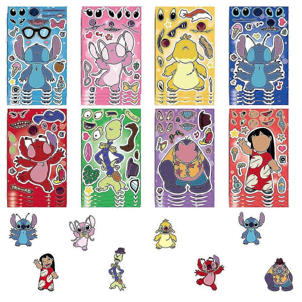 24pcs Cartoon Lilo & Stitch Make-a-face Sticker Sheets Diy Make Your Own Stitch Mix And Match Sticker Sheets Kids Party Favor Supplies Craft Gifts