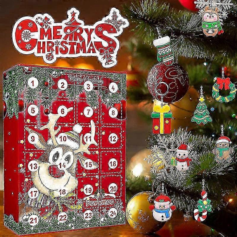 24pcs Christmas Countdown Advent Calendar Toys Keychains For Kids Xmas Gift