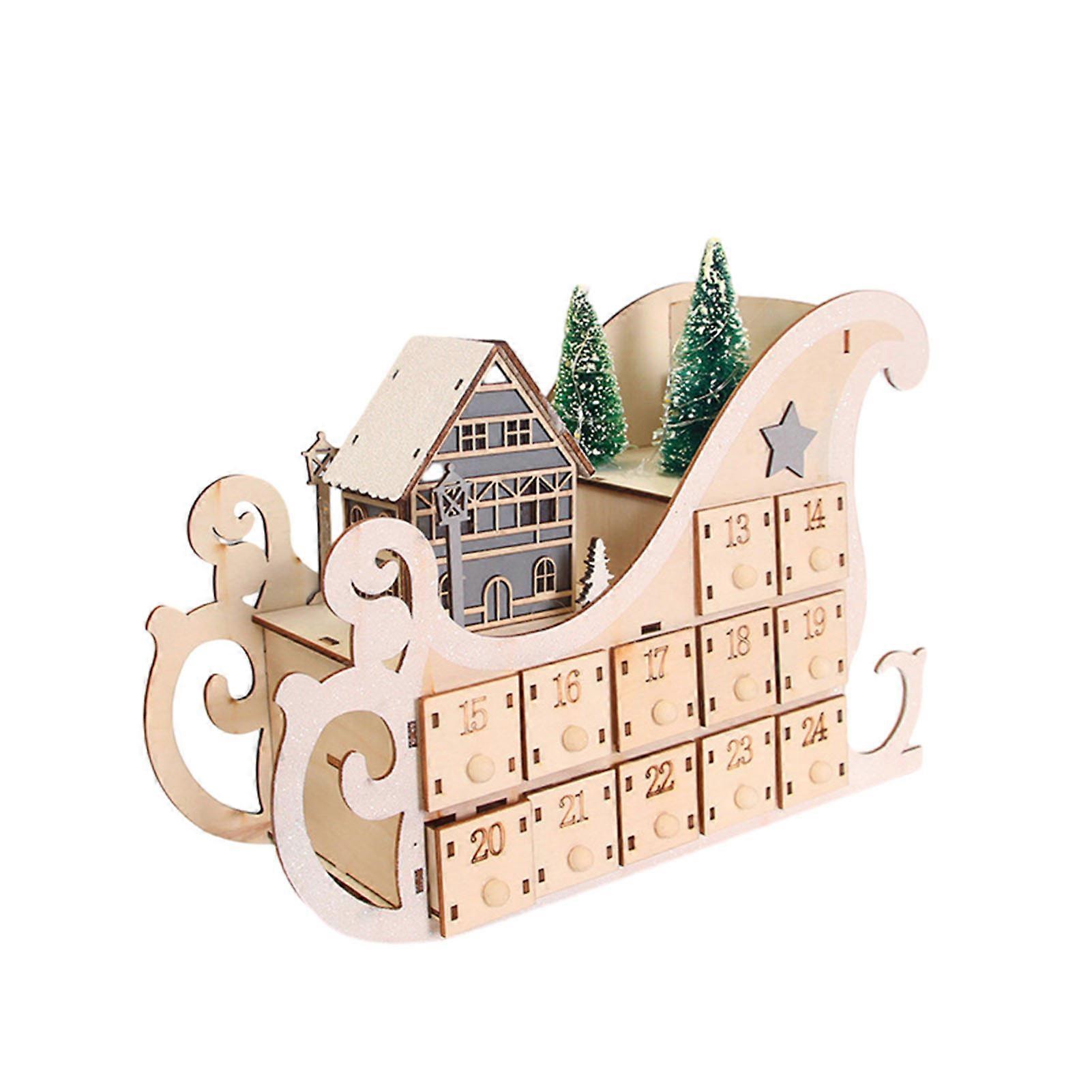 24 Day Wooden Christmas Countdown Calendar with Tree Wear Resistant Craft Model for Living Room Home
