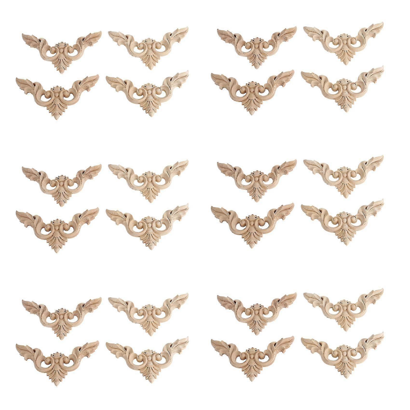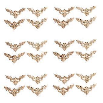 24pcs 8x8cm Wood Carved Corner Onlay Furniture Home Decorations Unpainted Applique